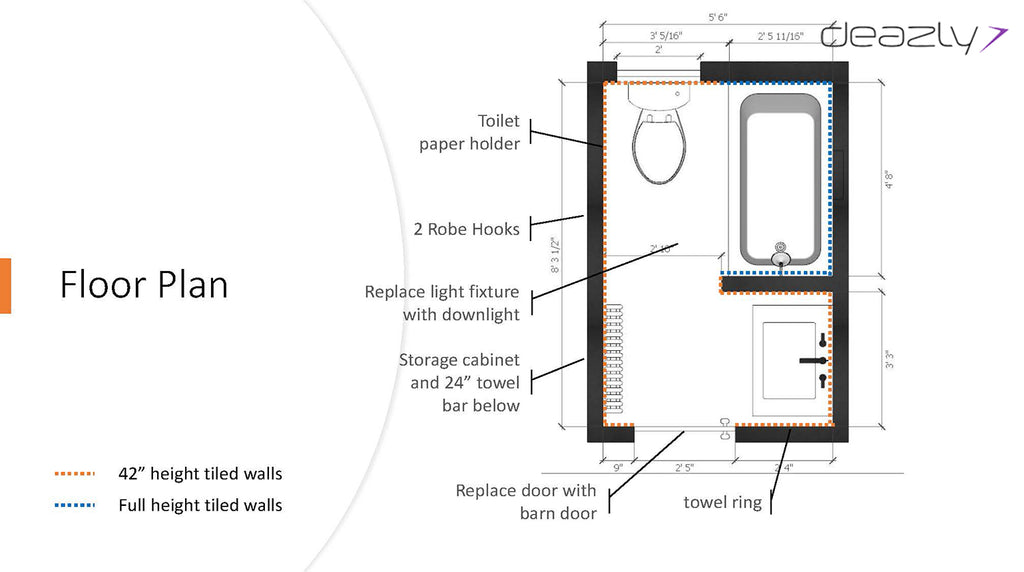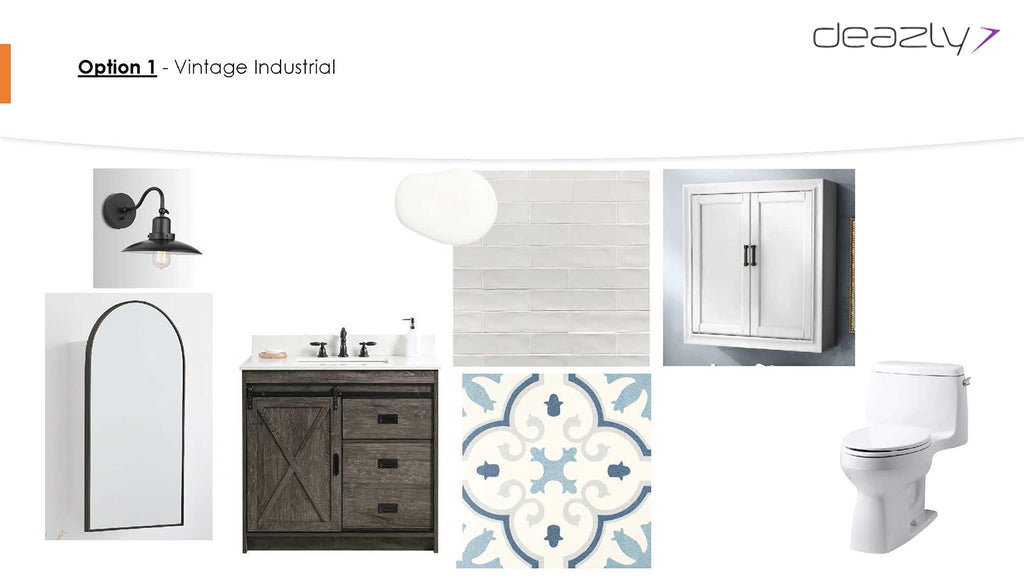 The timeless half-height subway tiles walls with white paint on top create a spacious feeling in the bathroom. The wood finishes and details of the vanity along with the wall sconce add a vintage style, while the floral oldworld pattern tile on the floor add color and make a unique style statement.