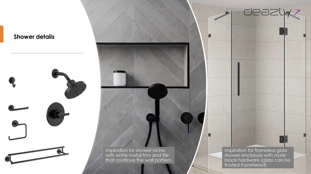 Accent 3-dimensional, picket hexagonal shaped tiles at shower walls